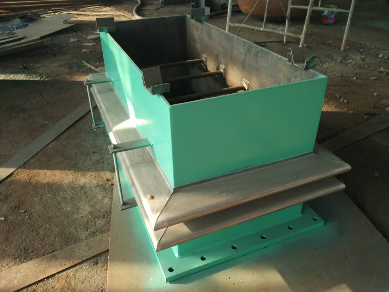 8、矩(方)形三波補償器對用于氣體介質的膨脹節及其連接管道,作水壓試驗時,要考慮充水時是否需要對膨脹節的接管加設臨時支架 以承重。